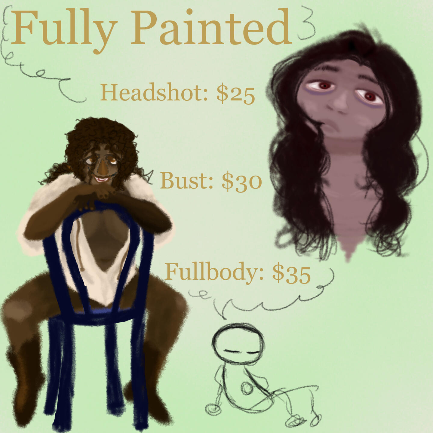 Hello, I'm Dre! This is my commission page. For more examples of my work, you may check out my Tumblr. Once you've read through this and my Terms of Service, I'll gladly take your information using my google form. Thank you for your interest!